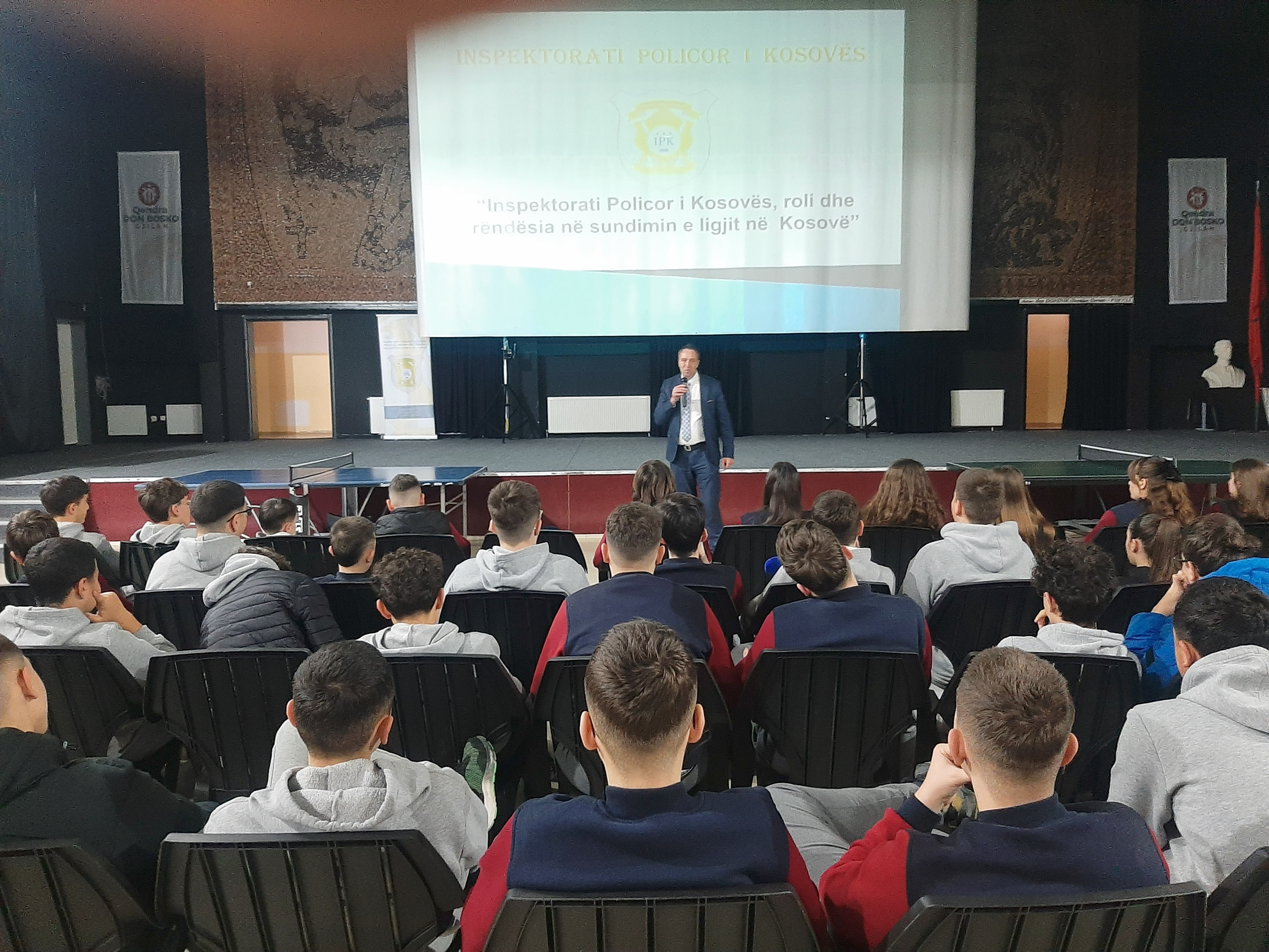 Në kuadër të aktiviteteve të planifikuara nga Inspektorati Policor i Kosovës (IPK) për vetëdijesimin e qytetarëve mbi fushëveprimin ligjor të tij, në shkollën "Don Bosko" në Gjilan u mbajt një ligjëratë me temën “Inspektorati Policor i Kosovës, roli dhe rëndësia në sundimin e ligjit në Kosovë”.
